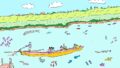 スケッチ ガリンコ2号 ガリンコ号2号は、オホーツクガリンコタワー(株)が、紋別港で運航している砕氷船である。 「ネジを廻すと前に進む」原理を利用した「アルキメディアン・スクリュー」と呼ばれる螺旋型のドリルを船体前部に装備し、それを回転させて氷に乗り上げ、船体の重さを利用して氷を砕き、前進する。 少し見にくいが、船前方下に、お化けみたいに大きなネジが隠れている。 2023.08.19 スケッチ