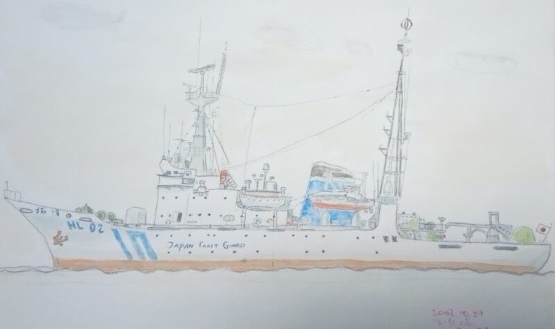 2003年10月、保安庁の拓洋がお台場に停泊していた。なんだかカッコいい船なので、スケッチした。