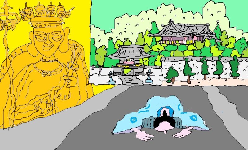 「わらしべ長者」は絵本や童話でいろいろなバージョンがありますが、奈良・長谷寺のお話がもとになっていることを知り、イラストで描いてみたくなりました。