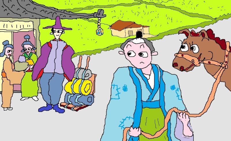 男は大切にしていた布一反をやって死んだ馬を買った。