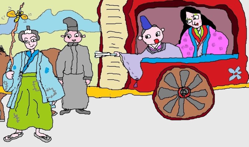 そこで、残った布一反で鞍を買い、もう一反で秣(まぐさ→馬や牛の食べる草)と自分の食料を買って、京に入った。