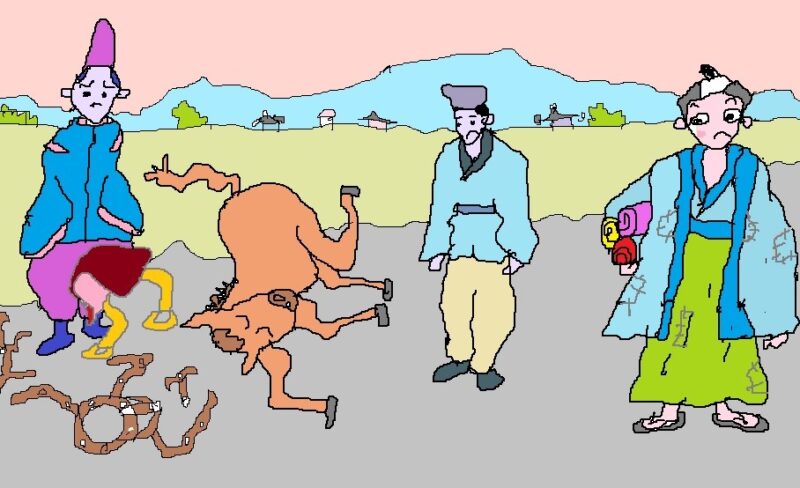 乗り手は、茫然としていたが、やがて、駄馬にのりかえて、供のものに死んだ馬の処理を命じて行ってしまった。