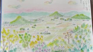 2005.5.9 橿原神宮前駅から、持参した折りたたみ自転車に乗って予約した甘樫の丘(あまかしのおか)近くの民宿に向かった。鳥が鳴き飛鳥川が流れ、のどかな、すばらしい田園風景が広がっている。泊り客はぼく一人。(食事も料理も優遇していただいた。)まだ明るかったがスケッチは翌日にして、あちこち自転車で見物することにした。南に行くと亀石があった。ユニークな顔つきは明日香村のシンボルになっているという。