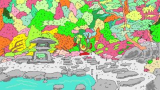 朝から暑かった。大仏様の斜め前の日陰になる木の下で大仏さまを描いていた。そろそろ絵も完成というとき、5人の女の子がためらいながらやってきた。小学6年生で埼玉県越谷から修学旅行で来たという。