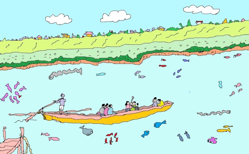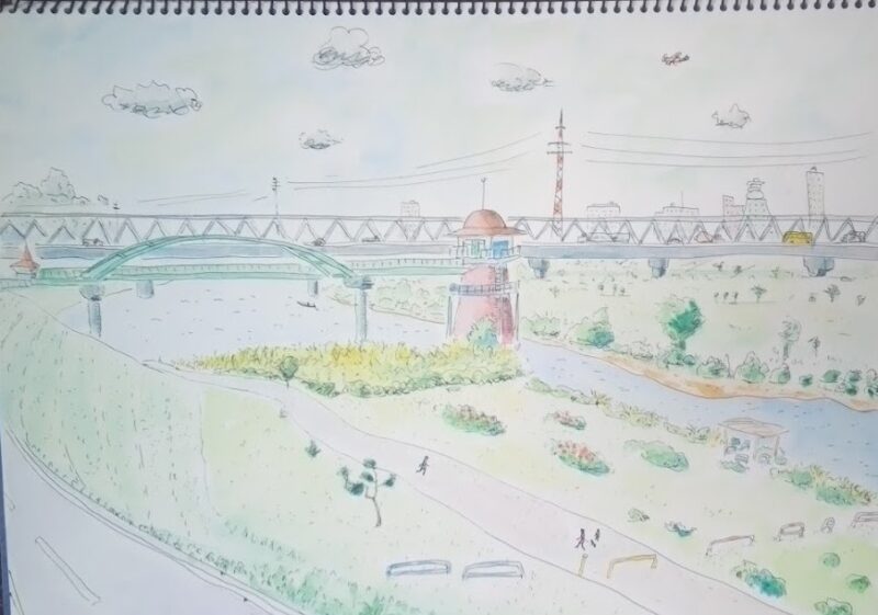 絵を描き終えて裏手にある江戸川に足を向けた。矢切の渡し公園は、あまりに気持ちよく、土手に大の字に寝っ転がって、鳥のさえずりを聞きながらしばし空を見ていた。