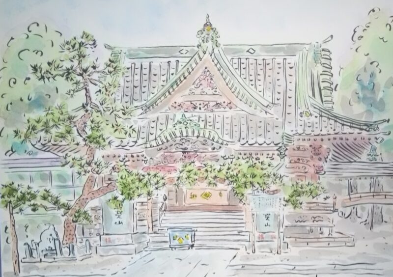 5月の爽やかな日、「男はつらいよ」で知られる柴又帝釈天にやってきた。正面の松がすばらしい。瑞龍松といって樹齢500年の黒松だという。絵を描きながら瑞龍松は500年の間何を見てきたのだろうと想いをめぐらした。