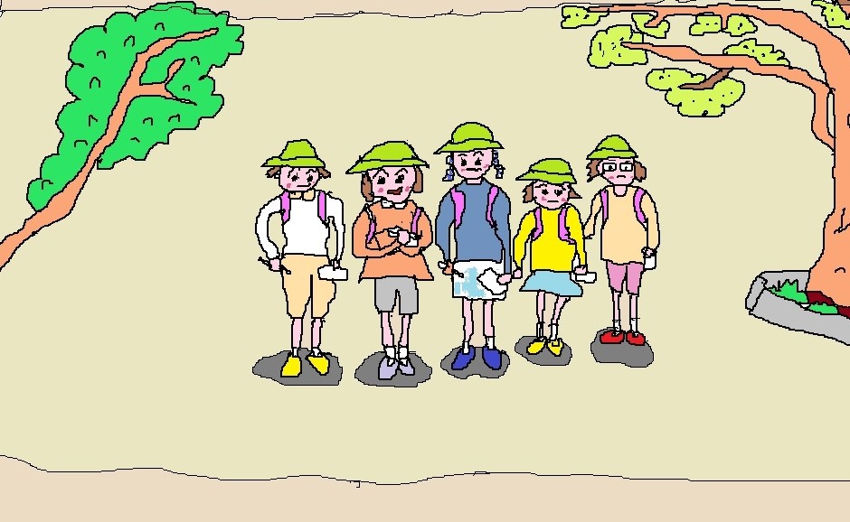朝から暑かった。大仏様の斜め前の日陰になる木の下で大仏さまを描いていた。そろそろ絵も完成というとき、5人の女の子がためらいながらやってきた。小学6年生で埼玉県越谷から修学旅行で来たという。