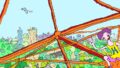 あわてて、絵が完成する前に、赤い船をつけ加えた。中央左に進むのがガリンコ2号。