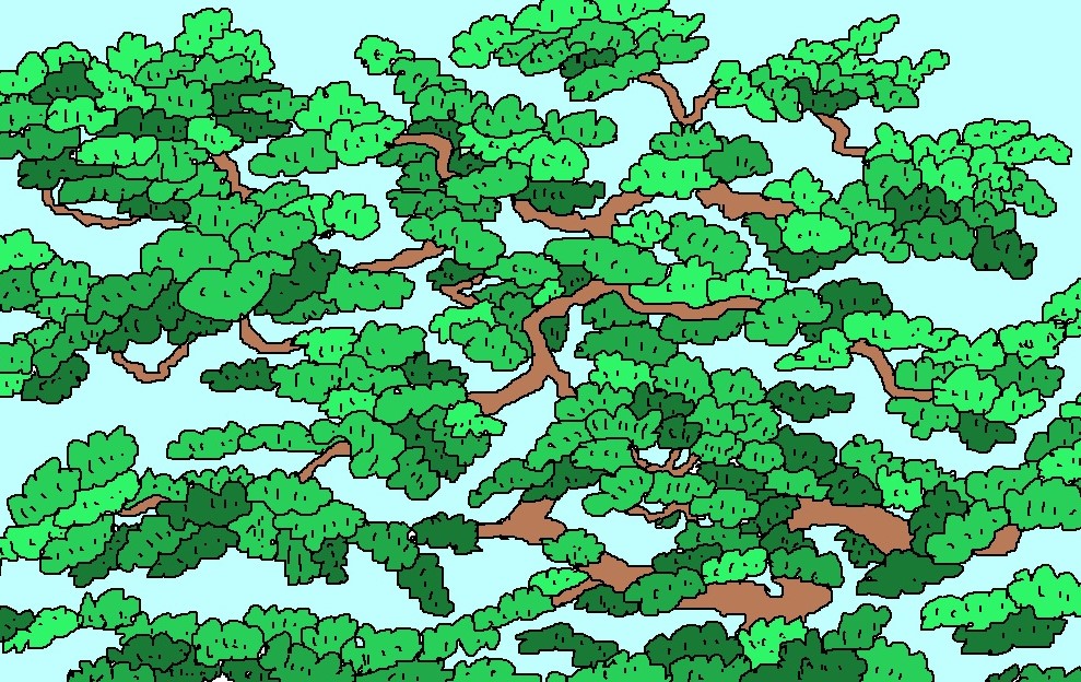 樹齢300年のクロマツをイラストで描いてみた。絵では枝を支える支柱は書かなかったのでデフォルメして描いた。支柱がないとこんな感じかなと。松が嬉しくて空に向かって踊っているように見えた。