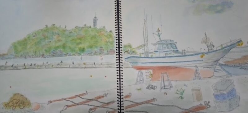 江の島を背景に港の雰囲気が描ければと思ったのである。