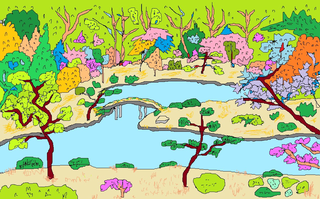 庭園は中の島を有する大泉水を樹林が取り囲み、紀州(現在の和歌山県)和歌の浦の景勝や和歌に詠まれた名勝の景観が八十八境として映し出されています。 (六義園公式サイトより)