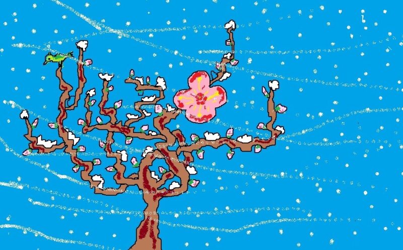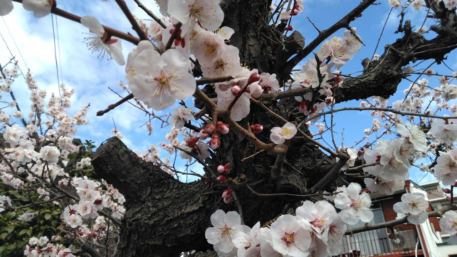 そして梅の木を見上げた。たくさんの蕾の中に一輪、花がさいている。