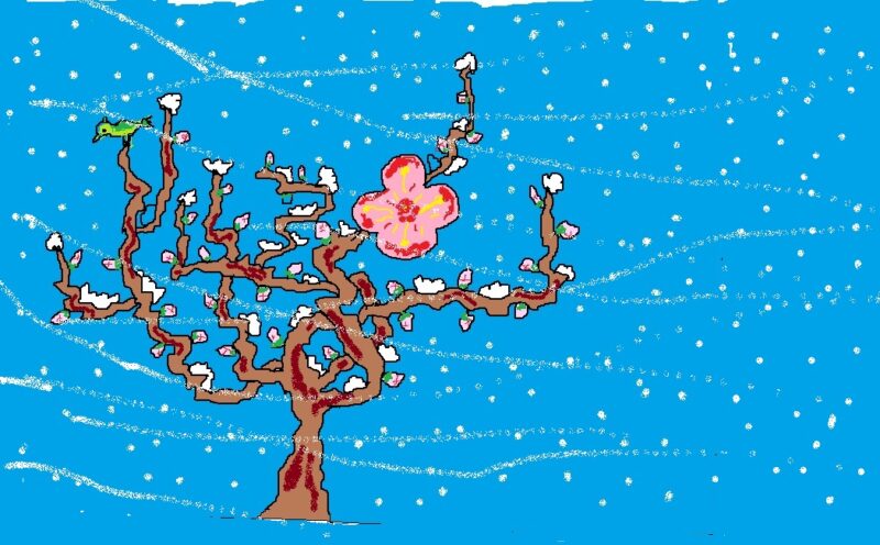 そうだ。寝間着姿で梅一輪を描いた2月のあの日のことが思いあたった。